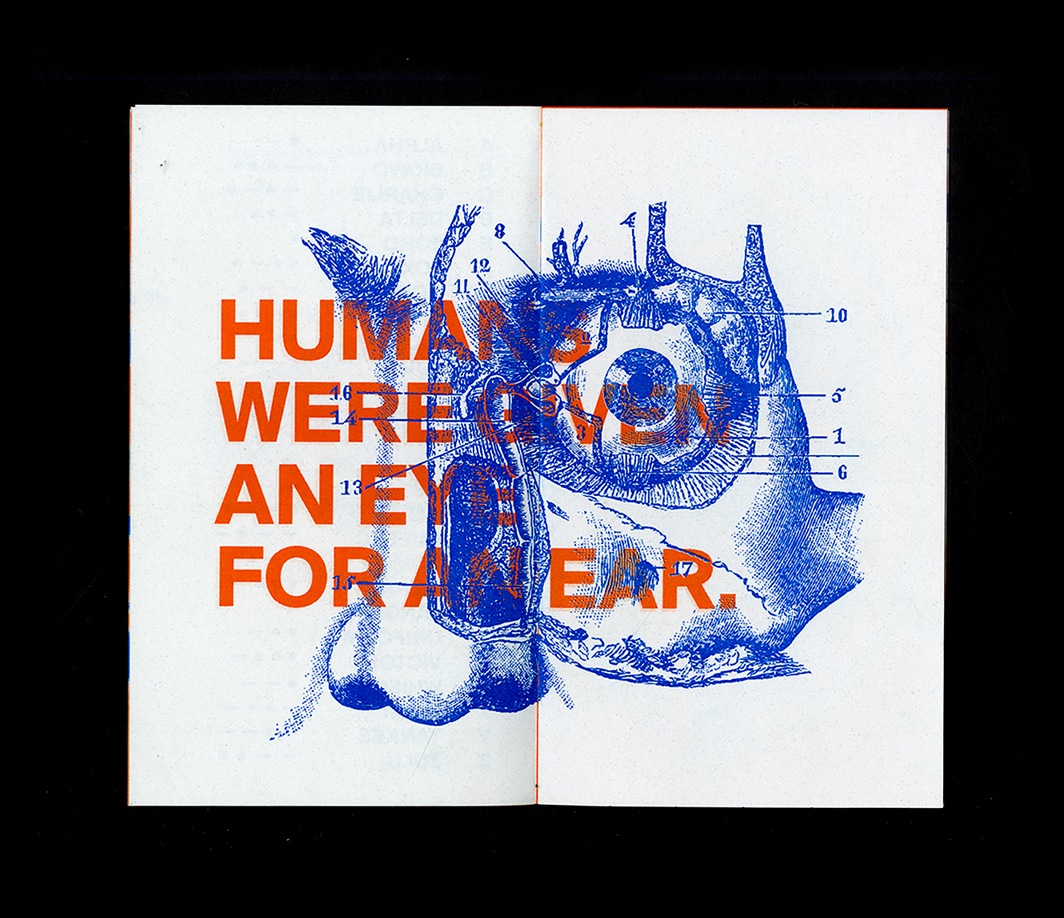 Typefaces include Gotham by Hoefler & Co., and Adobe Caslon Pro by Adobe Originals. This book is hand-bound and printed on 100lb text Legion Bamboo paper, 90% Bamboo, 10% Cotton.