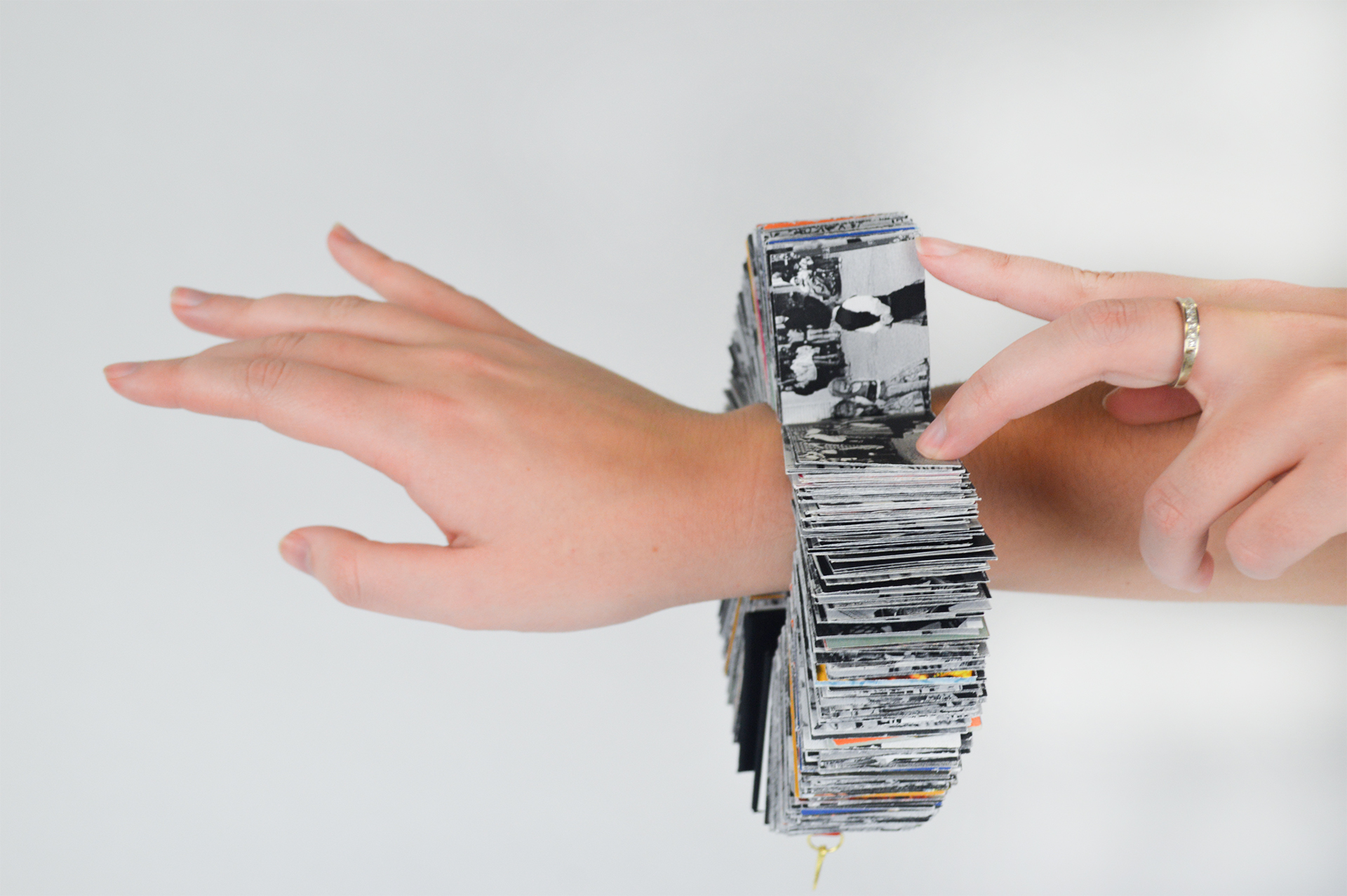 The initial archive that I compiled consisted of images of traditional performances, patterns and textiles, Christian icons and jewelry that have inspired the intricacies of the costumes dancers wear during their performances. The styles of traditional folk dances are focused on circular motion that embody graceful and sinuous in movement, line, or figure. The final medium I chose to make a small book that is to be worn around the wrist, embodying the fluid movements of the wearer.
